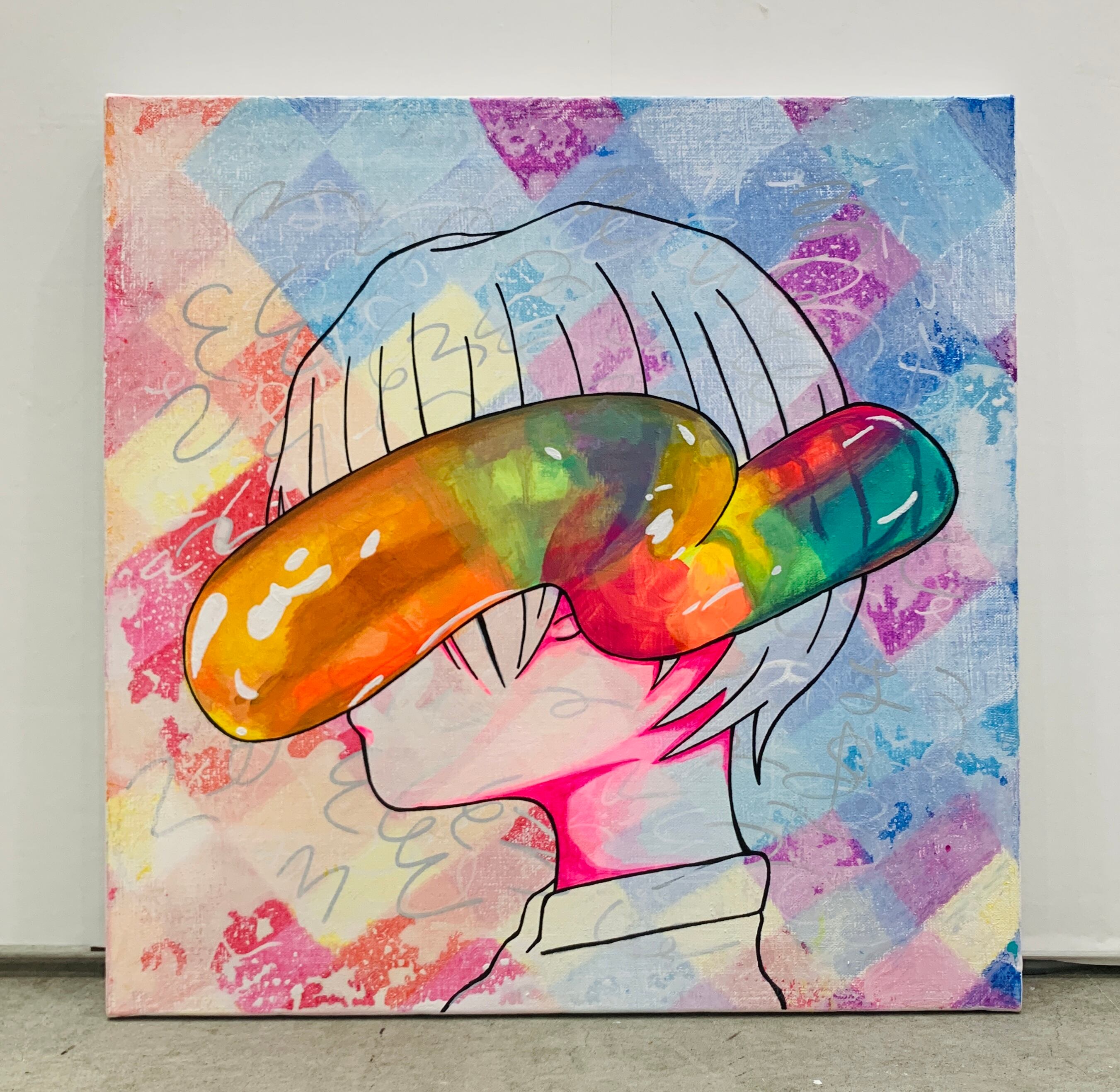目元を覆う「何か」の中で夢を想い描くNaachin。独自の視点から描かれるこの作品は、観る者に夢のような世界観を提供します。